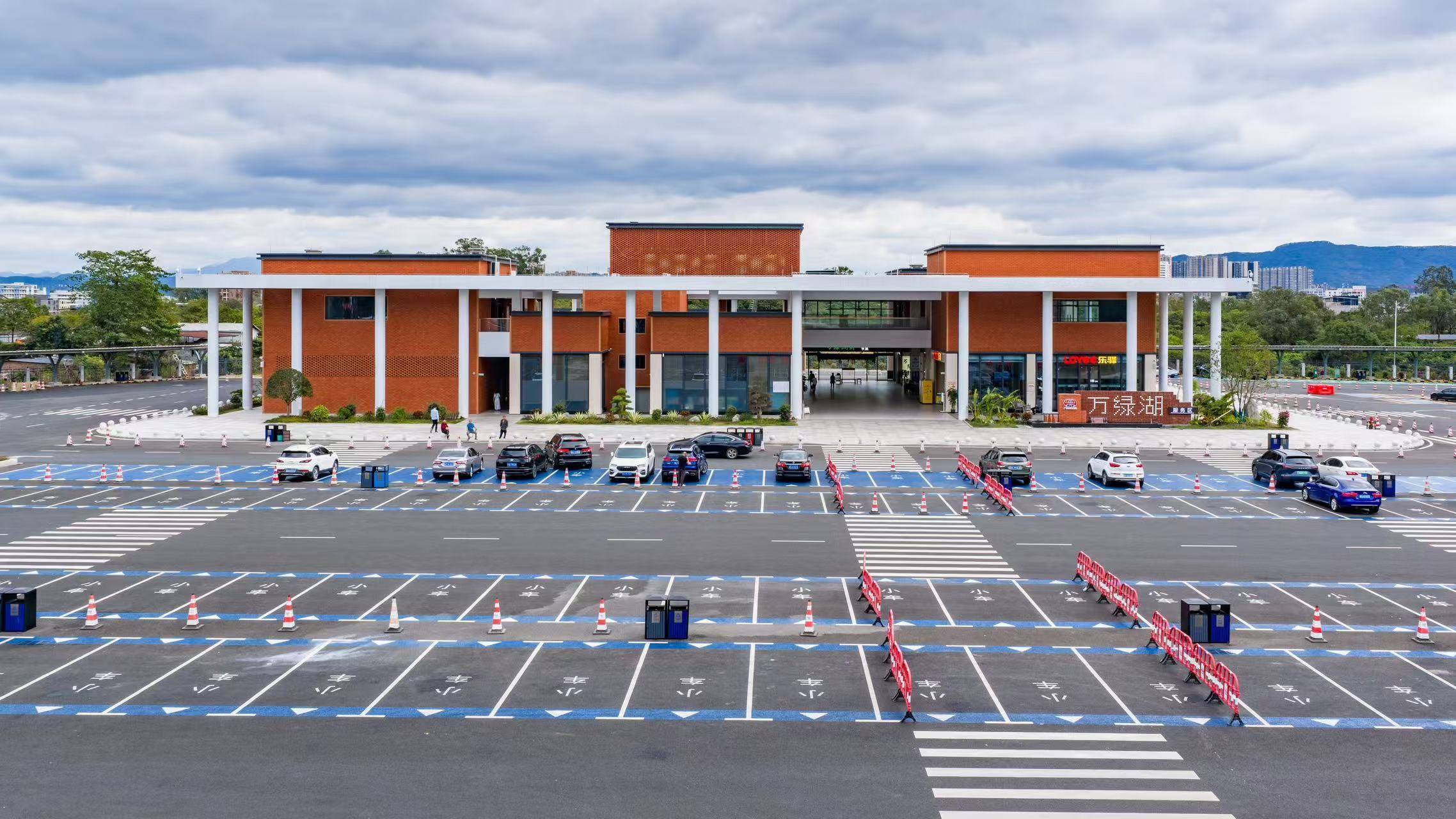 万绿湖服务区围绕绿色低碳主题打造万绿湖服务区以绿色低碳为主题,项目建设期用于智慧梁场生产的光伏组件,已“搬家”至此继续“服役”,实现服务区绿色供能。服务楼内设置庭院景观及玻璃水幕,呼应河源万绿湖“绿水绕浮岛”生态景观,引入地方旅游服务中心,为过往旅客提供周边景点推介、特色民宿预订等服务,将高速出行与深度出游无缝对接。