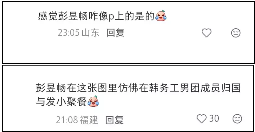 正如网友所说,彭昱畅好像P上去的,和其他人好像不是一个年龄。