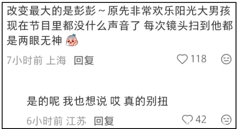 新一季《向往的生活》中,黄磊和何炅数次提及彭昱畅太瘦了,担心他低血糖,可见彭昱畅的瘦已然到了影响身体健康的地步,隔着屏幕的观众同样注意到彭昱畅不对劲。